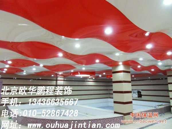 北京欧华鹏程装饰工程有限公司_主营:软膜天花,柔性天花,拉蓬吊顶软膜天花--欧华鹏程、软膜天花,柔性天花,天花吊顶;地址:北京市大兴区瀛海镇姜场工业园;欧华鹏程软膜天花又称柔性天花、拉展天花,采用特殊的聚氯已烯材料制成,其厚度只有0.180.15mm,具有防火、防水防潮、防菌的特殊功能,丰富的色彩和无限的造型空间保证了软膜天花在众多场所的使用效果,且安装方便,其抗老化的功能远远超过传统的天花材料,所有这些组件在自然条件下均可达十几年以上。软膜天花是吊顶史上的一个突破,在国内市场已慢慢代替传统的天花材料。欧华鹏程软膜时尚、典雅,以其多样的造型、绚丽的色彩、迷人的灯光效果逐渐成为室内装饰流行趋势。真所谓欧华鹏程软膜天花为您打造非同一般的空间!!!